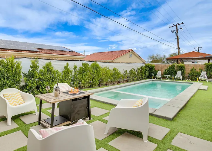 Dans cette villa accueillante de 2 salles de bains, vous serez à moins de 25 minutes à pied du Two Bunch Palms Spa Resort et à moins de 16 minutes de marche d'Hacienda Palms Shopping Center. Cette villa de 4 chambres est située à quelques pas de lieux culturels tels que Desert Hot Springs Library.